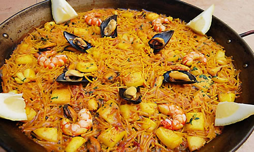 Hoy vamos a enseñarte a preparar una exquisita receta de mariscos gallegos llamada Fideua de Mariscos. Los ingredientes que necesitas para realizar éste exquisito platillo de la gastronomía de Galicia son los siguientes:
